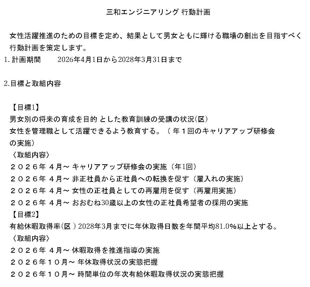 | 一般事業主行動計画の内容 (2021-2024) |